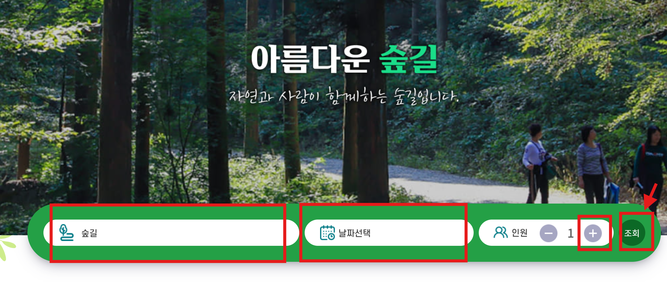 3. 숲길, 날짜, 인원 선택