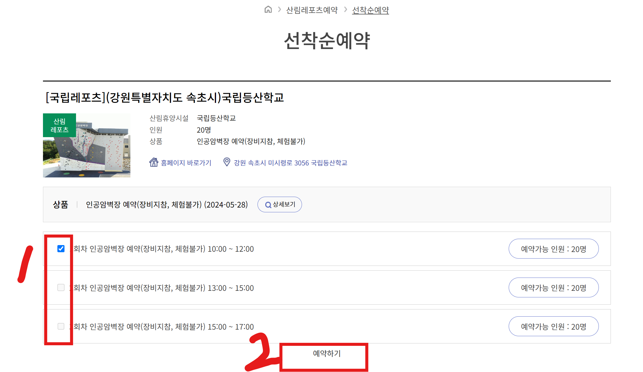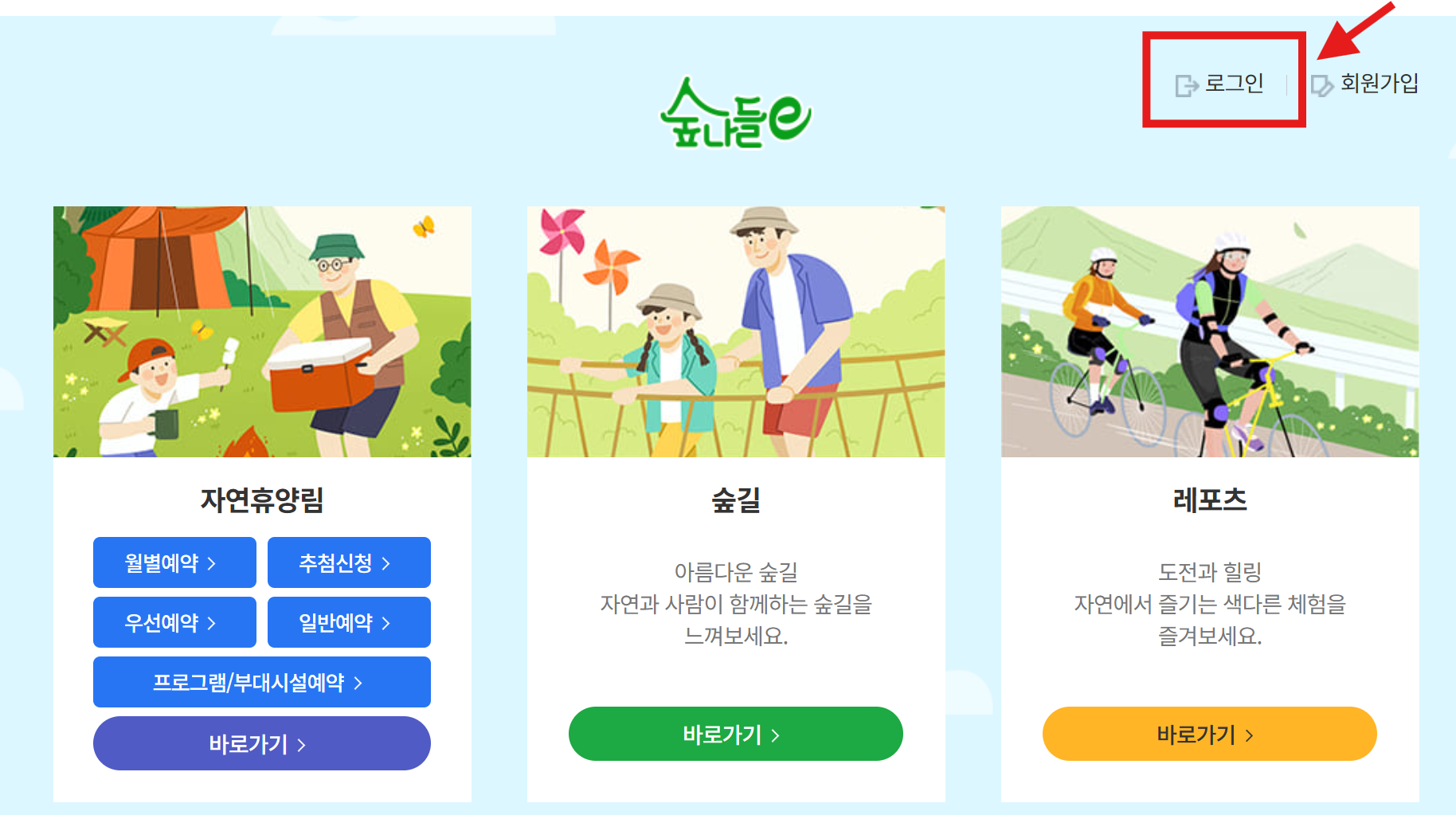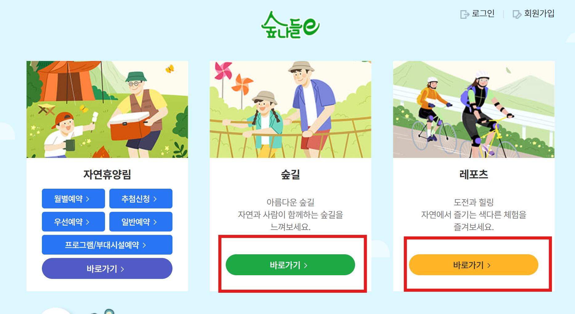 산림레포츠 예약방법