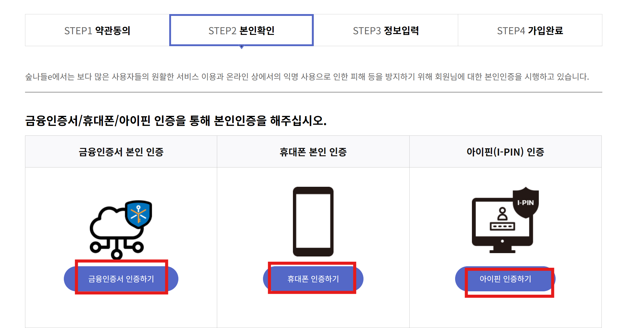 간단히 본인을 확인한 후 가입이 완료됩니다. 세가지 방법 중에 한가지를 선택하시면 됩니다.