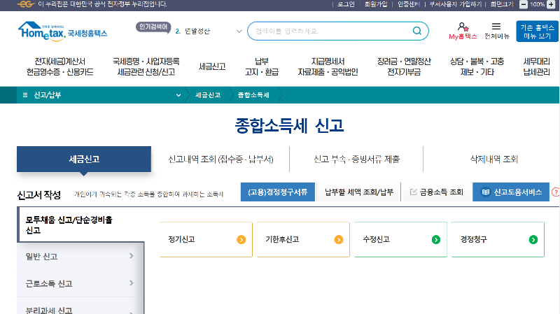 그러면 두번째와 같은 화면으로 전환되며, 여기서 종합소득세 신고를 진행하실 수 있습니다.
