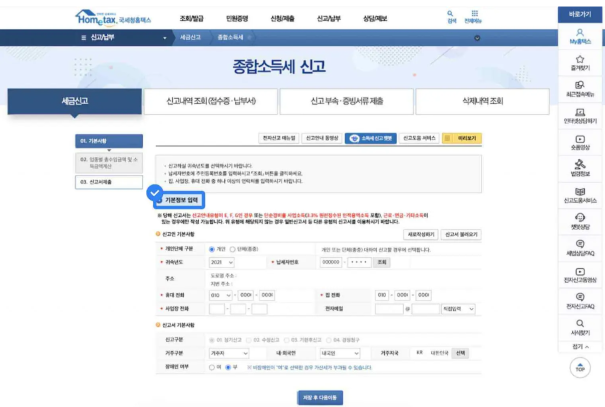 step5.신고 절차 안내를 참고하여 홈택스에서 종합소득세 신고하기