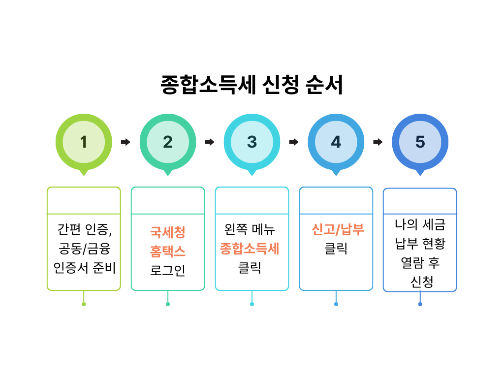 아래와 같은 순서로 종합소득세를 신청하시면 됩니다.